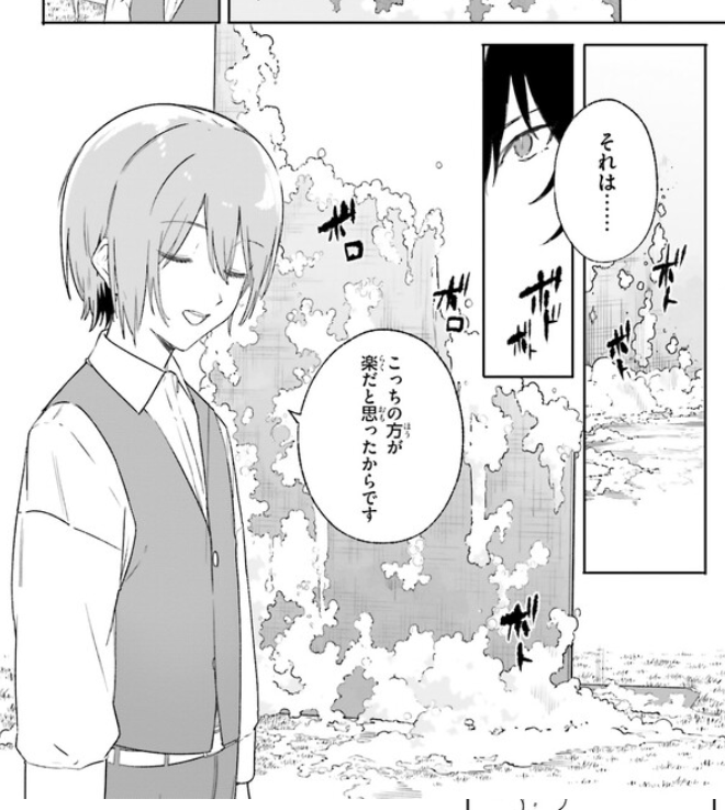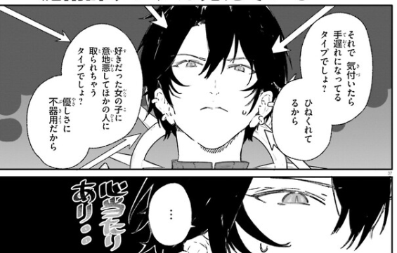 [Then, you realize at the end that you actually like the girl you’re picking on, right? You sound like you aren’t good with words, after all. So I think you’re the type of person who picks on the girl you like then loses her to someone else at the end, am I wrong? You’re kinda clumsy on that part, I guess, shishou.] (K)