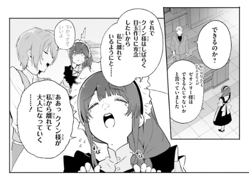 [I personally can’t say but Zeonly-sama said that there’s a possibility. On that note, Kunon-sama wants to focus on making his eyes and ask to be left alone for some time… Haaaaaaa…. Kunon-sama’s now all grown up…! Never have I thought there will be a day he’ll want to throw me away from his side..!] (I)